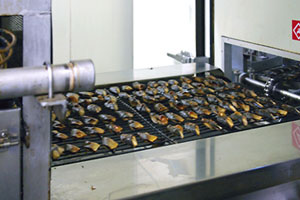 しっかりと調味熟成された魚は、遠赤外線・近赤外線を組み合わせた直火のラインでふっくらと焼き上げ、焼き目も自然に仕上がります。HACCP方式の下、焼き上がりは中心温度で管理。ロット毎・1時間毎に焼き上がりの魚の中心温度を計測し、管理・記録しています。